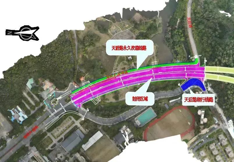 据了解,为确保大角山隧道主线全线早日通车,施工方将封闭隧道洞口段天后路进行施工,为确保可正常进出天后宫,将于6月13日提前开放港前大道段辅道,对进出南沙天后路的通行路径进行转换。